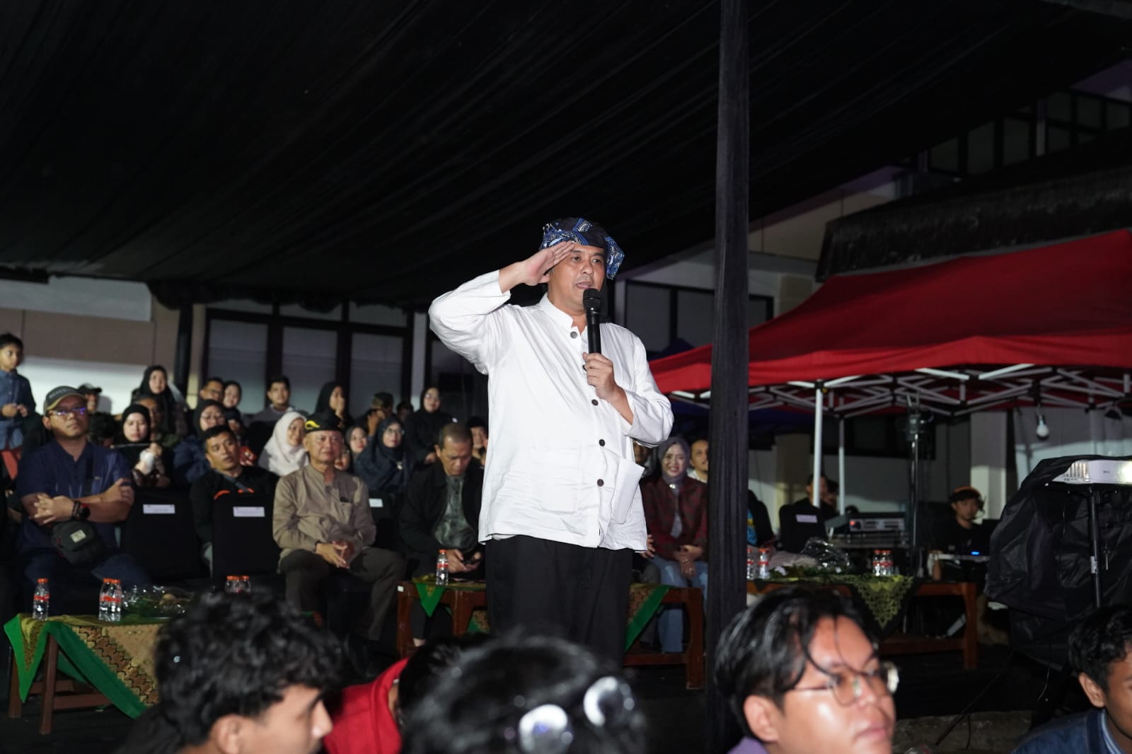Berita Tasikmalaya, tasik.id – Wakil Wali Kota Tasikmalaya Diky Chandra bersama Kepala Dinas Pemuda, Olahraga, Kebudayaan dan Pariwisata (Kadisporabudpar) Kota Tasikmalaya Deddy Mulyana menyaksikan pertunjukan teater Jantur Art Based Research karya Budi Riswandi yang digelar di area parkir Fakultas Ilmu Kesehatan/FISIP Universitas Siliwangi, Sabtu malam (14/03/2026).
