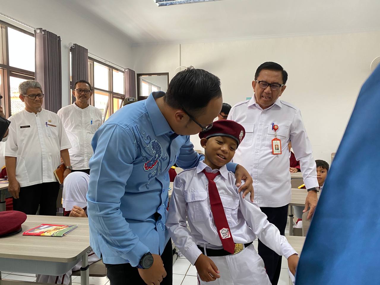 Ia dan Wali Kota Viman juga sempat masuk ke ruang kelas saat siswa mengikuti pelajaran Matematika. Keduanya menyapa siswa sambil memberikan semangat.