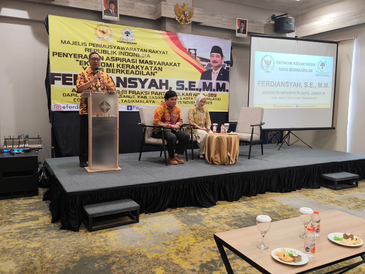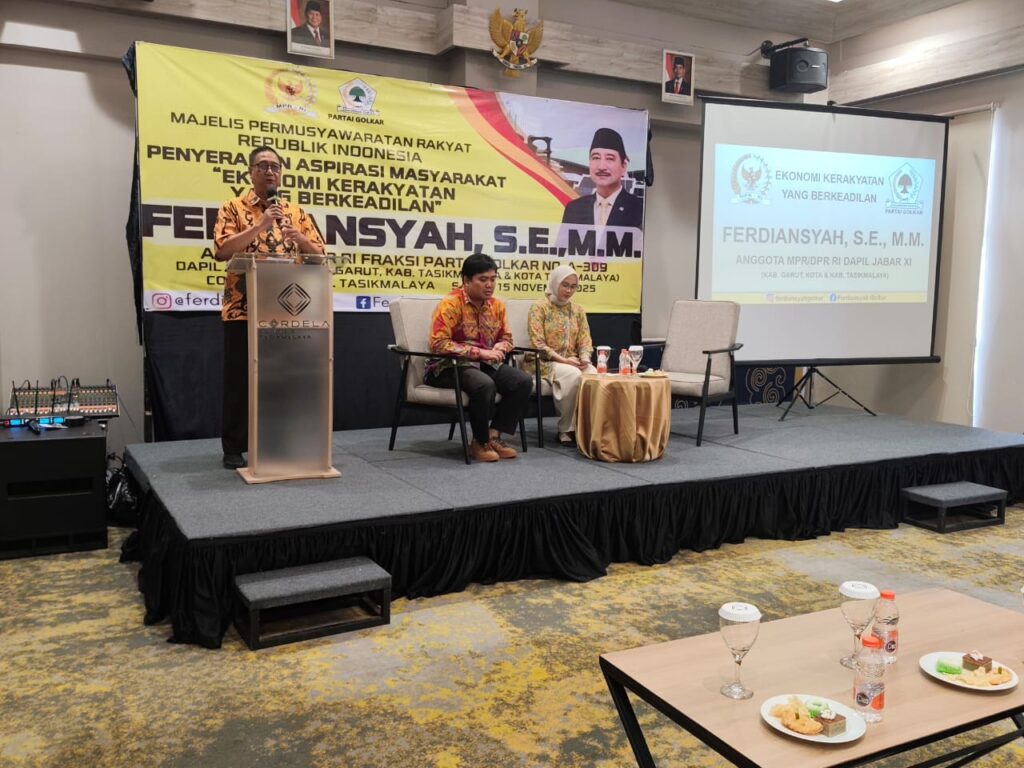 Berita Tasikmalaya, tasik.id – Sekretaris MPR RI Fraksi Partai Golongan Karya (Golkar), H. Ferdiansyah, S.E., M.M. menggelar kegiatan penyerapan Aspirasi Masyarakat (Asmas) di Hotel Cordela Tasikmalaya sabtu (15/11/2025).