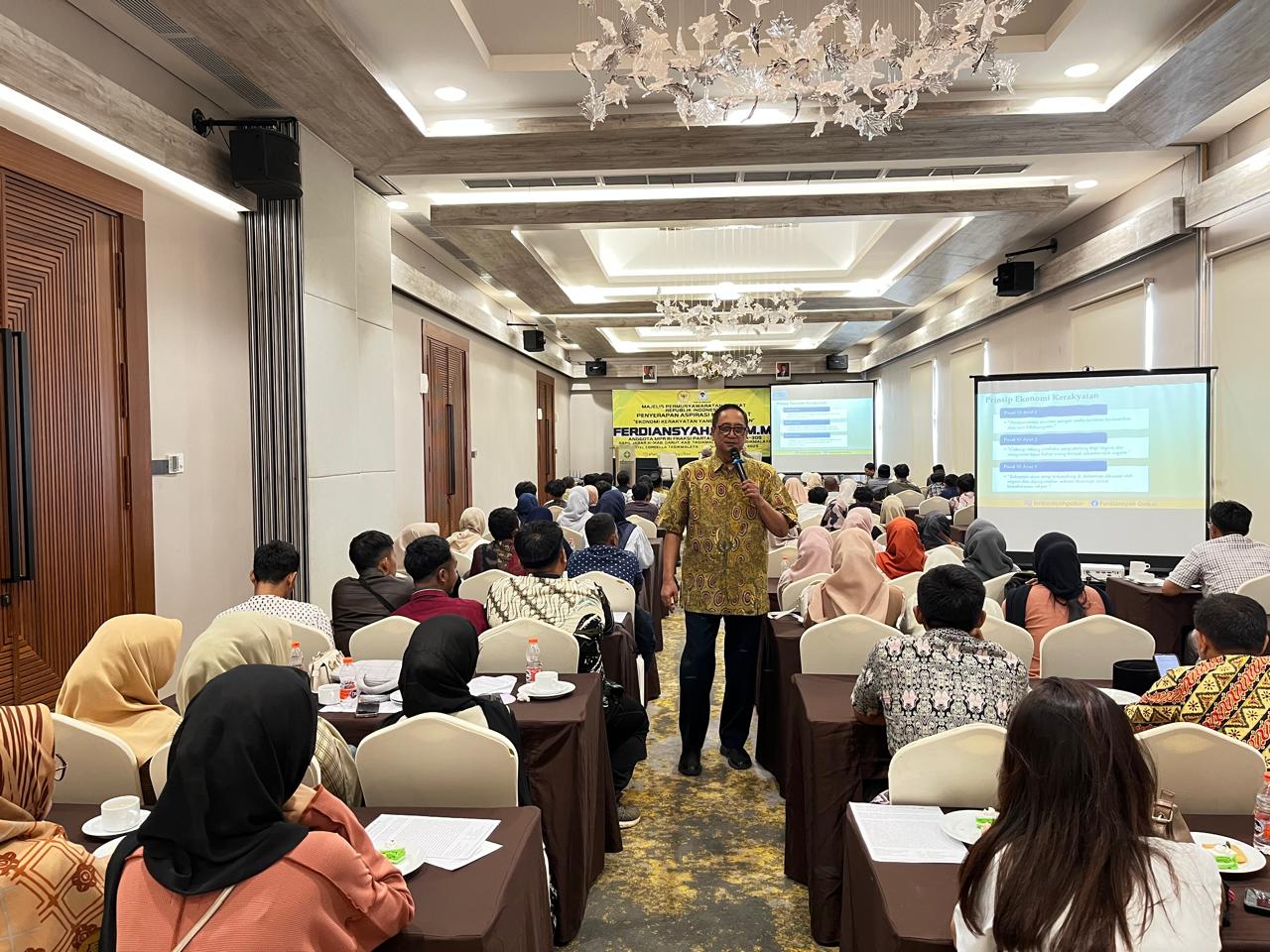 Kegiatan dengan Narasumber utama Ferdiansyah anggota MPR RI Fraksi Partai Golkar. Dalam pemaparannya, Ferdiansyah menyampaikan bahwa konsep ekonomi kerakyatan dikembangkan sebagai upaya untuk lebih mengedepankan peran masyarakat dalam membangun kesejahteraan, melalui penguatan dan pemberdayaan masyarakat sebagai aktor utama pembangunan ekonomi yang berkeadilan.