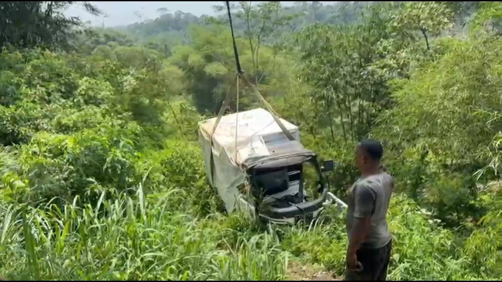 “Kendaraan itu beriringan tiga unit. Yang paling depan oleng dan masuk jurang, diduga lepas kendali,” jelas Aripin.